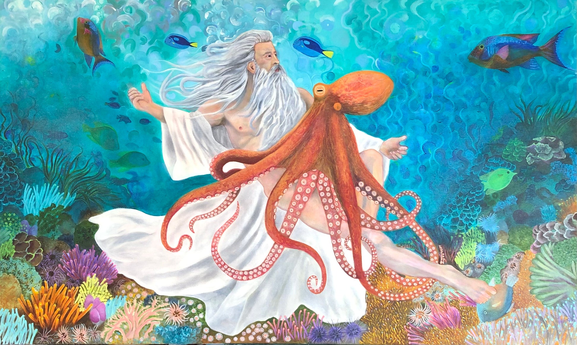 Long ago, before nets or engines or names, the Sea was not a place, it was a garden. Its gardener was not man, but something older, a being who breathed with the tides, whose arms shimmered with kelp and light, whose body was coral, fishbone, and sun. The creatures did not fear him.